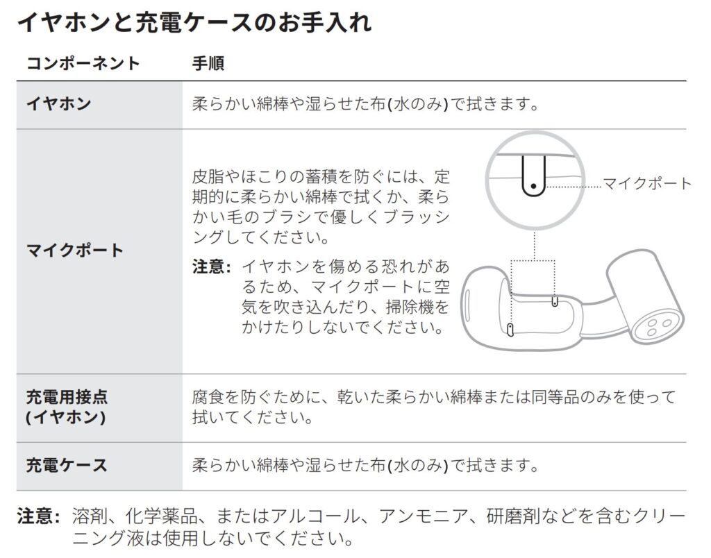 手入れ方法について、取扱説明書には以下のように書かれています。