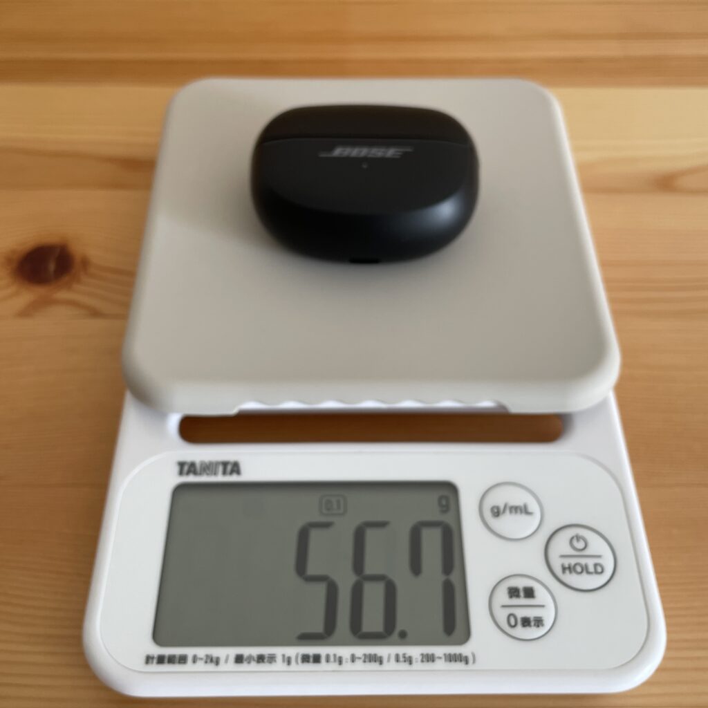 片耳は6.4g、ケース込みで56.7gです。