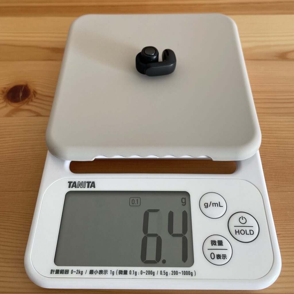 3COINSのイヤーカフイヤホン片耳の5.0gよりも1.4g重いですが、重みは気にならない程度です。