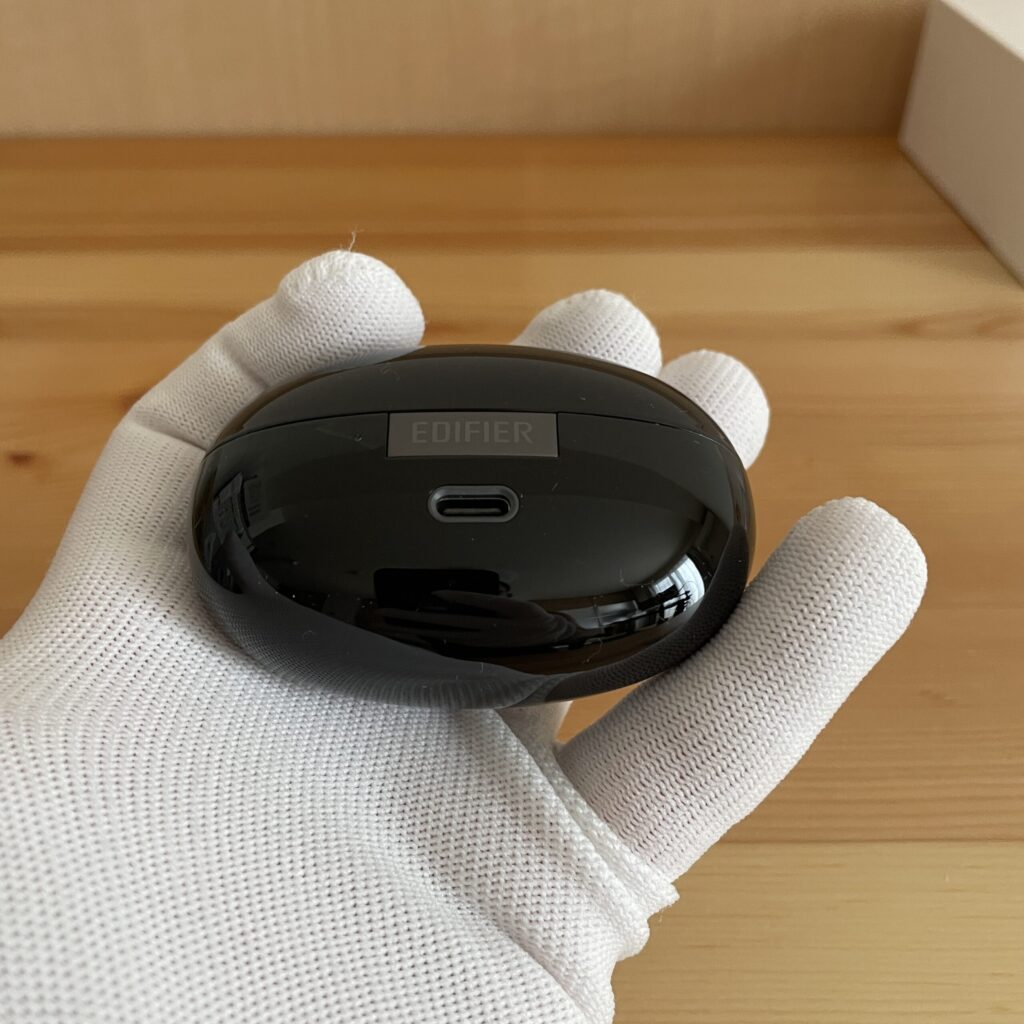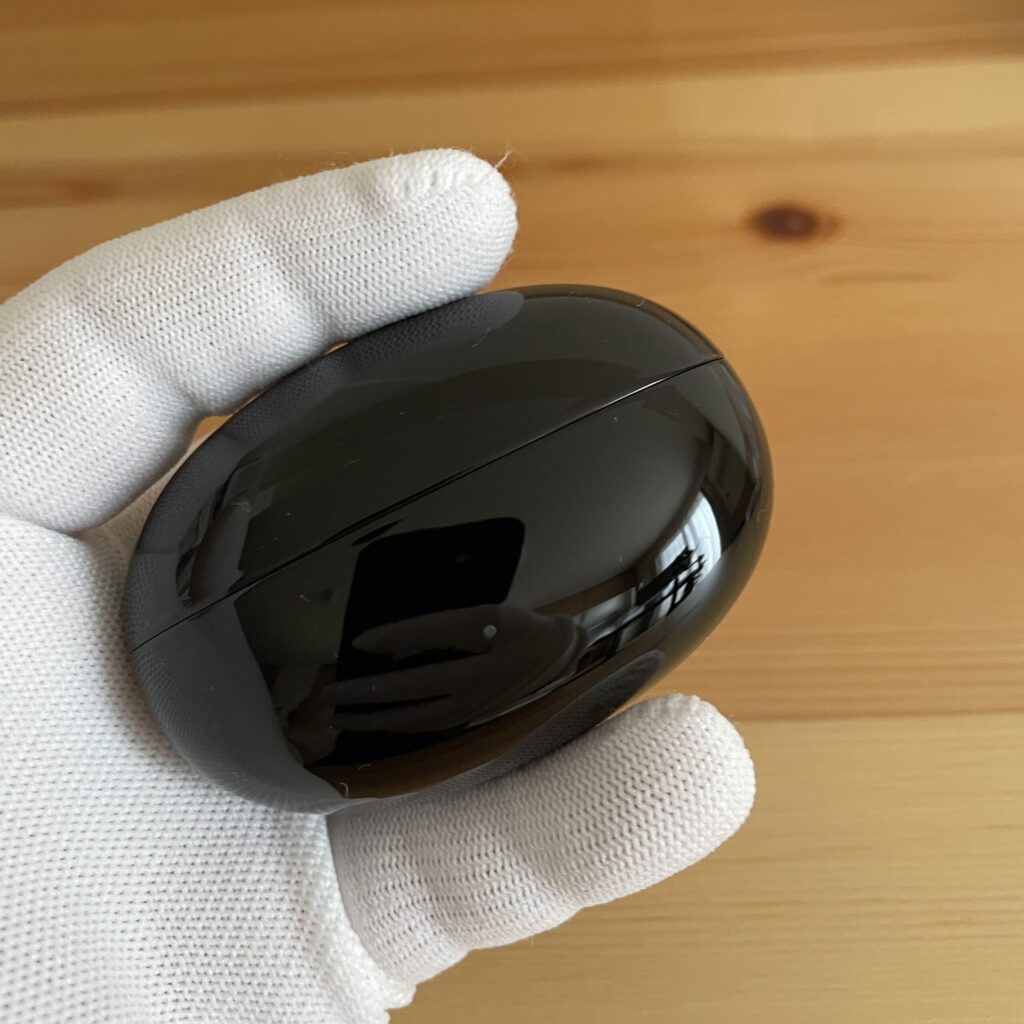 充電ケースはツルツルしていて触り心地良いです。ただ、手袋をつけた状態だとちょっとあけにくいかも。