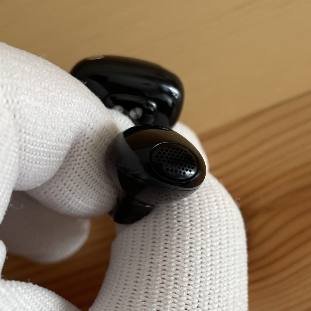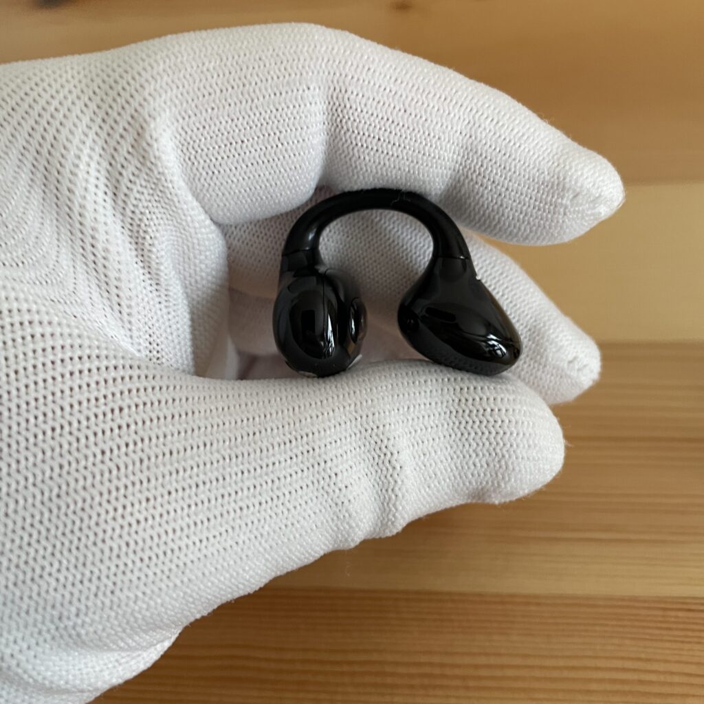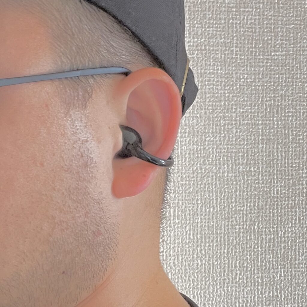 ただオープンイヤー型ではあるものの、けっこう耳の穴の中に入り込むスタイル。