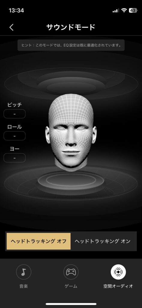立体感や音の位置感は標準的ですが、スマホアプリで空間オーディオモードを使うと音の方向はわかるようになります。ただ、奥行きの深さまではそこまで強く感じなかったのが正直な感想です。