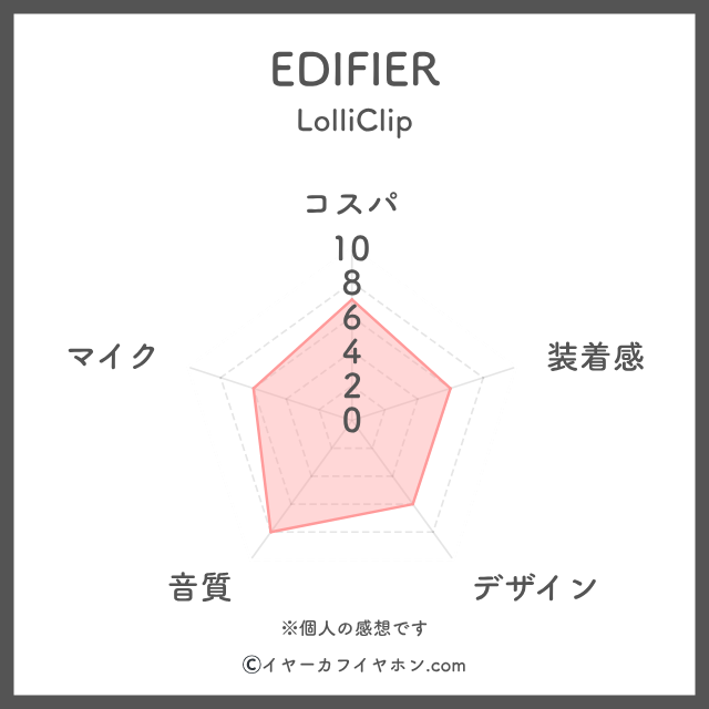EDIFIER LolliClipは、音質・機能・デザインのバランスが非常に良いイヤーカフ型イヤホンでした。