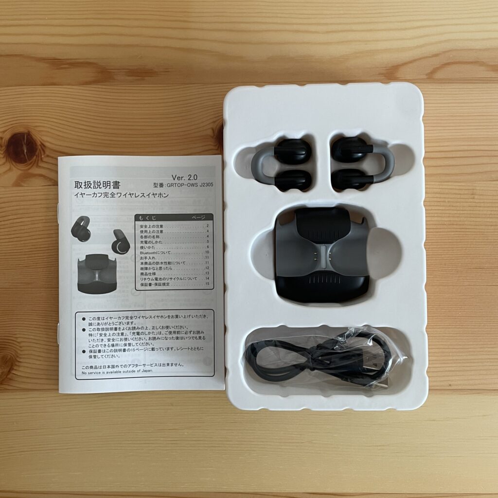 ゲオのイヤーカフ型イヤホン(GRTOP-OWS J2305)を実際に購入してレビュー記事をまとめました。