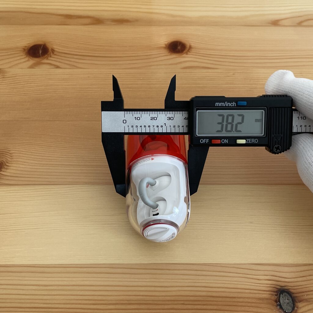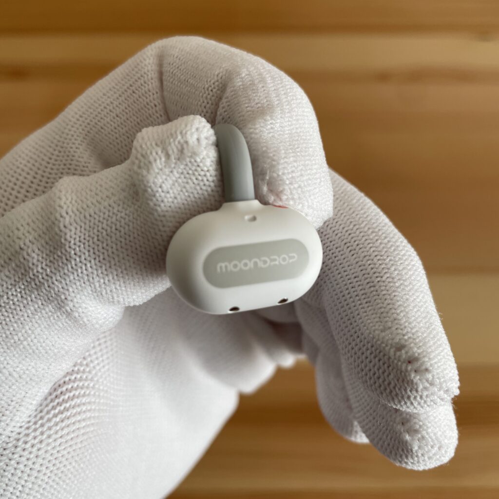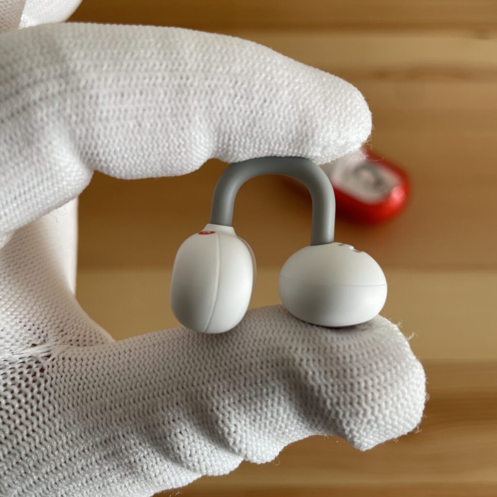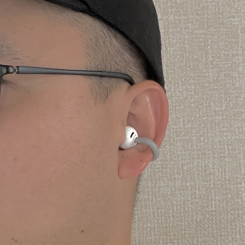 1つは、耳の穴に結構入り込んでくる感覚がありました。オープンイヤーであるものの他のイヤカフ型イヤホンに比べて、スピーカーの球体部分と耳穴の設置部分が広いと感じました。