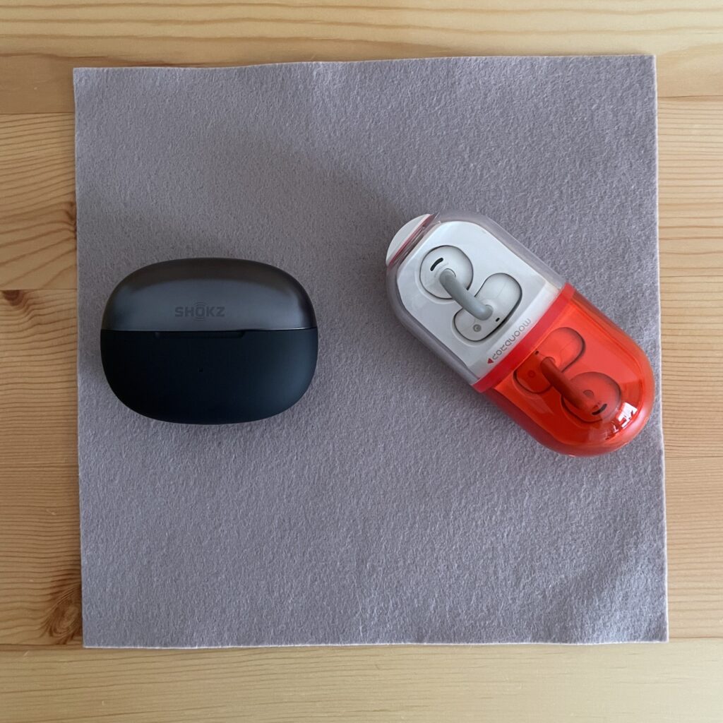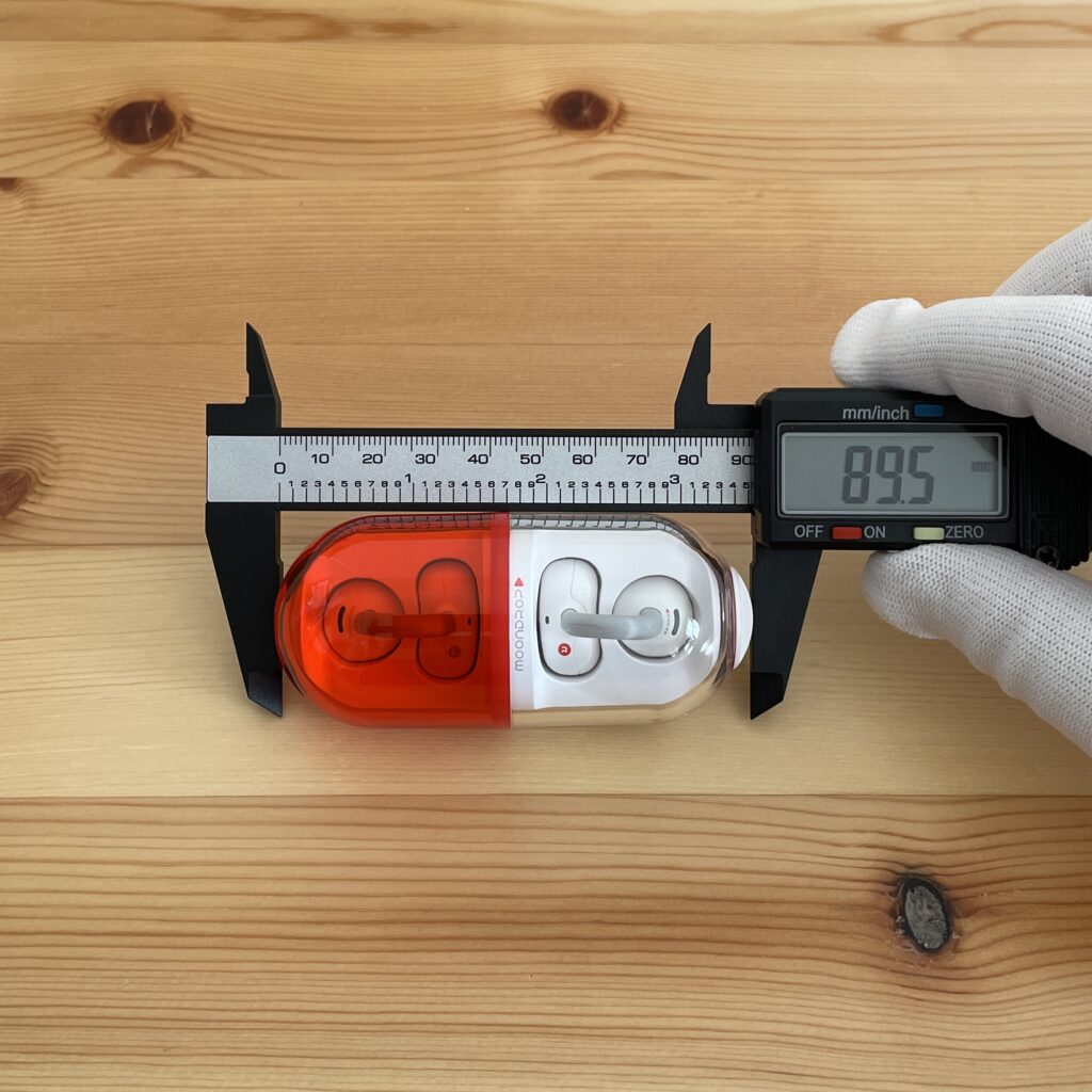 水月雨(MOONDROP)「Pill ミュージックカプセル」のケースは他のイヤーカフ型イヤホンと比較して大きめです。