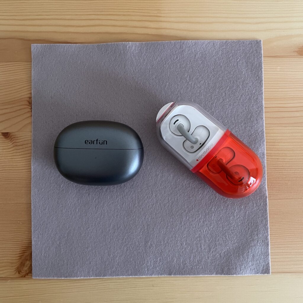 「Pill ミュージックカプセル」と1万円以下の同価格帯の「EarFun Clip」と大きさを比較してみました。