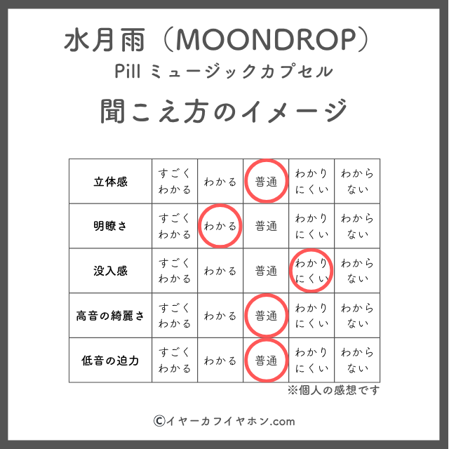水月雨(MOONDROP)「Pill ミュージックカプセル」の総合評価